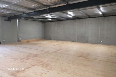 - High-clearance warehouse of 153m2 with large roller door access for easy loading and operations