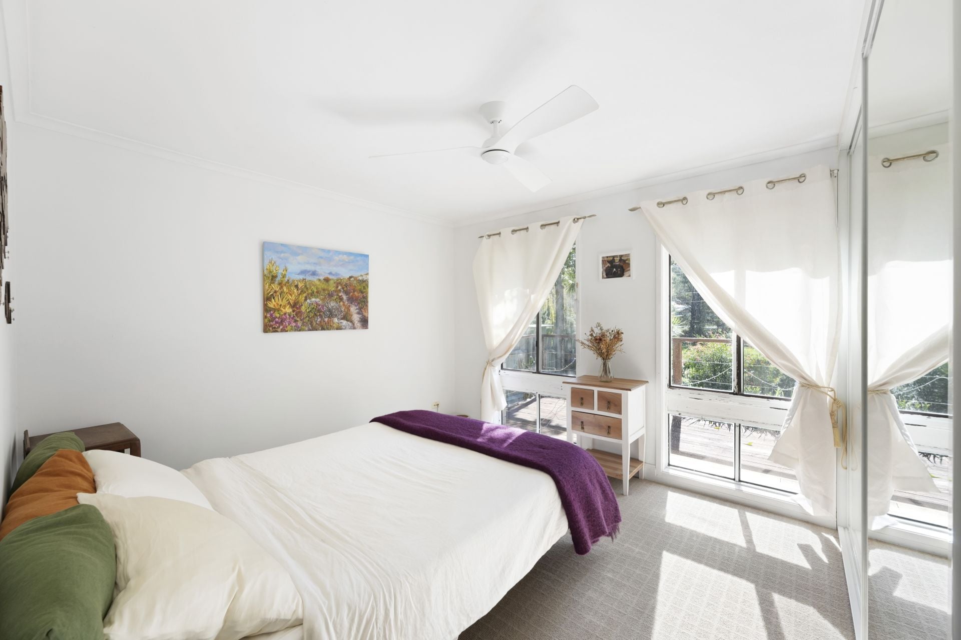 - floating wooden flooring in living areas and carpet to bedrooms