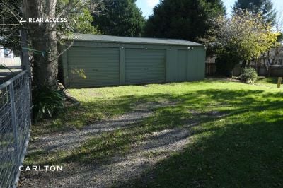 Additional comforts include air conditioning for year-round climate control, a full bathroom with shower, bath, and separate toilet, plus a laundry with a second toilet. There’s plenty of storage with a single internal-access garage, plus a double Colorbond garage and workshop with rear lane access.