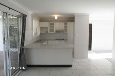 Inside, the home features three generously sized bedrooms with built-in wardrobes and a spacious lounge that flows into the dining and family areas. The central kitchen is equipped with electric cooking and opens out to a covered alfresco space, perfect for entertaining.