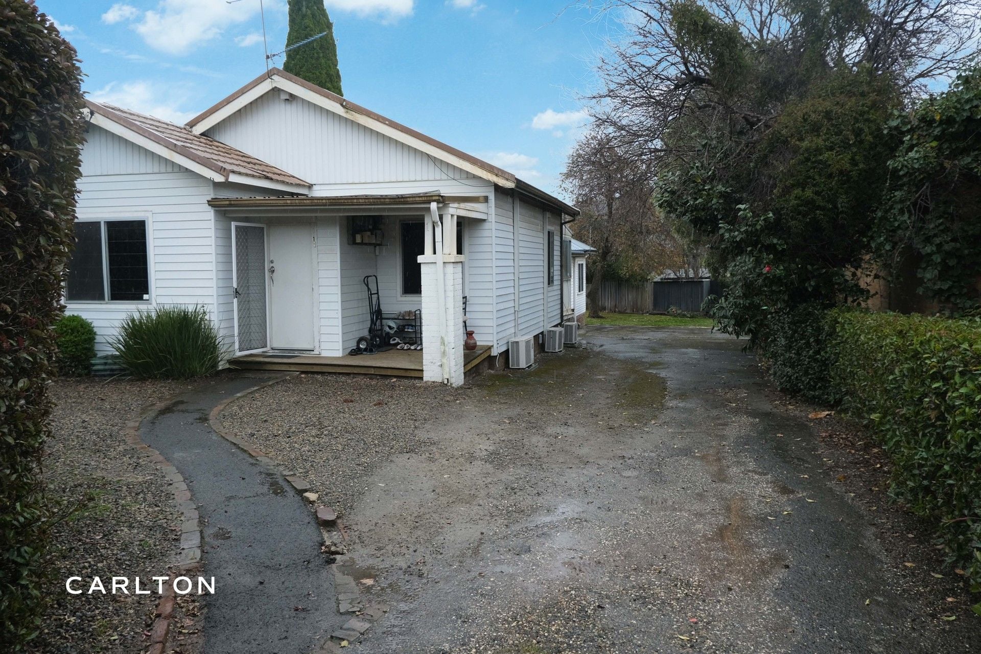 - Front unit: 3 bedrooms, 1 bathroom, living and dining areas, plus a European laundry.