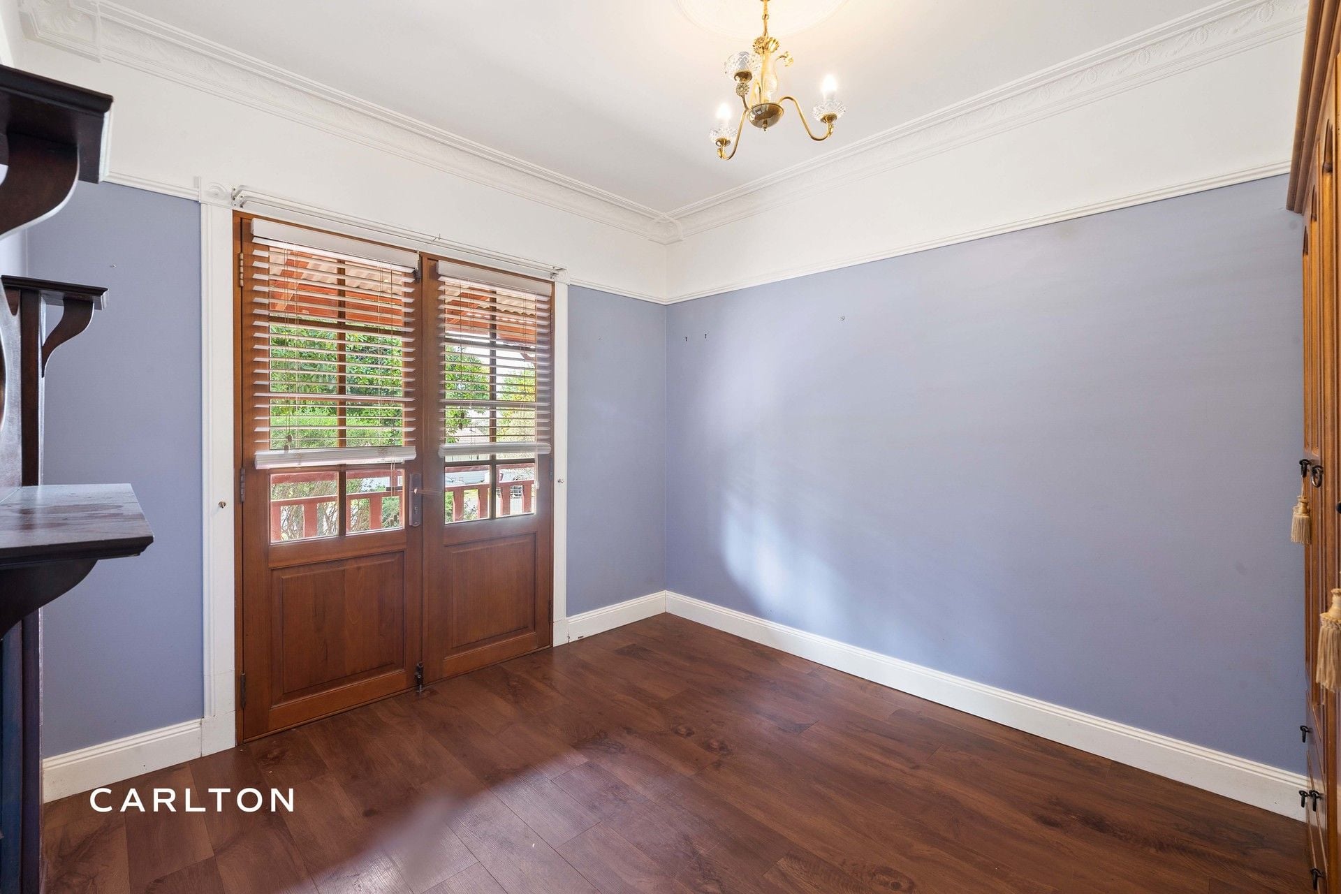 • Sunroom with double French doors to covered entertaining space