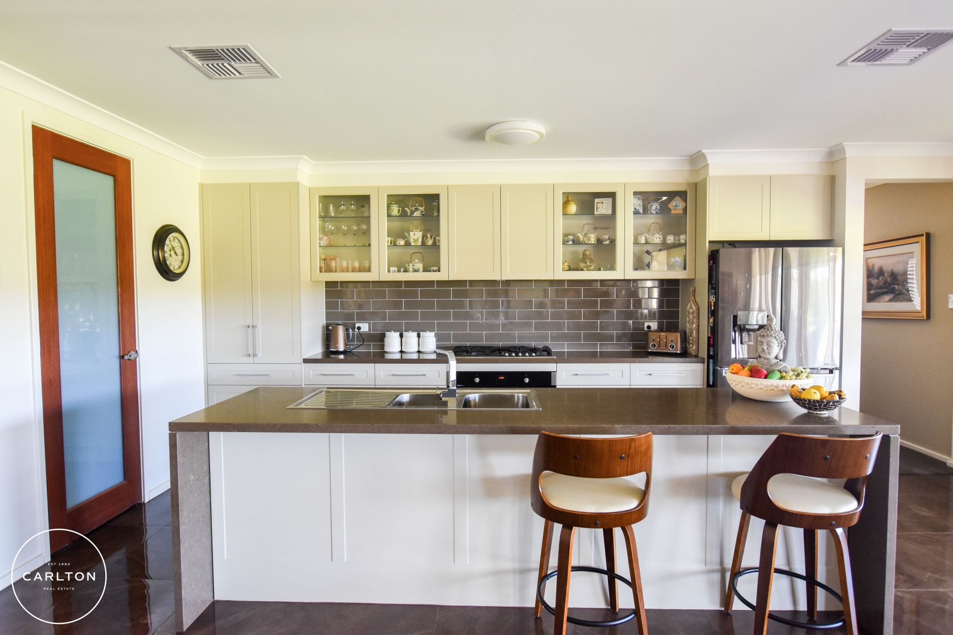 - The entry foyer flows through to the generous, welcoming hub of the home embracing casual living and dining areas and the kitchen – all backdropped by vistas of picturesque countryside, including your own private dam.