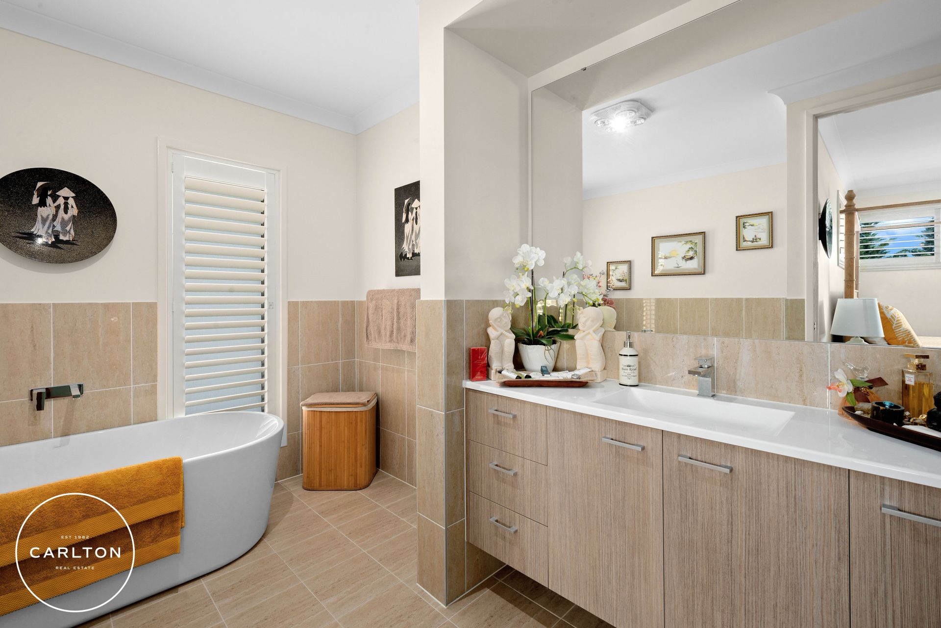 - The main bathroom is also alluringly luxe with another deep, freestanding bath, shower and vanity.