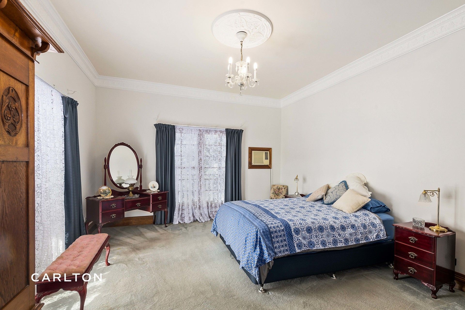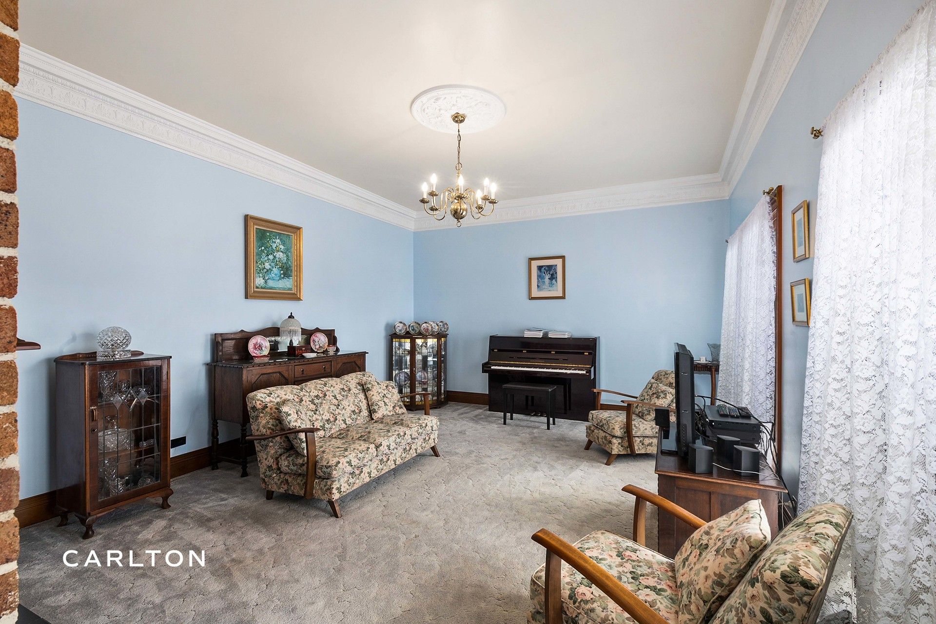 - 3m/10ft ceilings, featuring ornate cornice and light roses.
